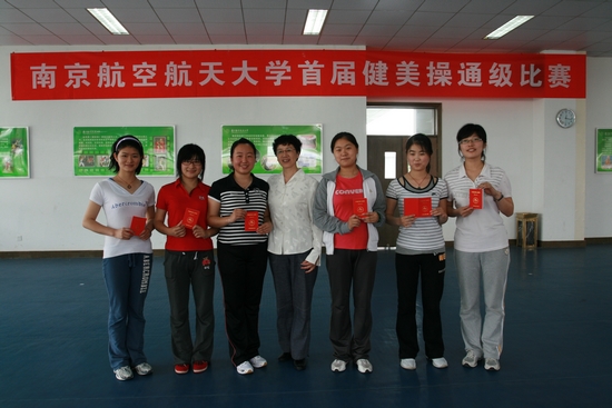 健美操是一项融音乐、健身、娱乐为一体,充满激情、活力,参与性、普及性强,深受广大学生喜爱的体育项目。本次通级赛是对我校健美操教学的一次大检阅,真实地反映了健美操运动的教学水平、普及水平和达标水平。来自我校09级和07级健美操选项班的500余名学生分别参加了大众三级和大众四级的测试。在近三个小时的比赛中,参赛同学动作优美划一,节奏明快富有活力;青春的微笑洋溢在她们脸上,在力与美中尽显我校当代大学生朝气蓬勃的风采。赛后由江苏省体育局健美操协会秘书长道明蓉女士为部分获奖同学颁奖。