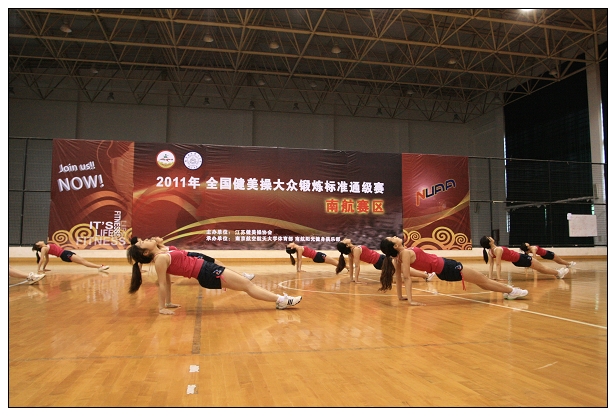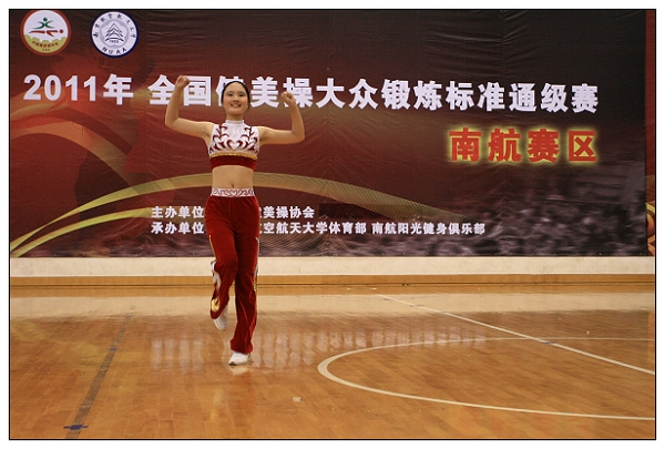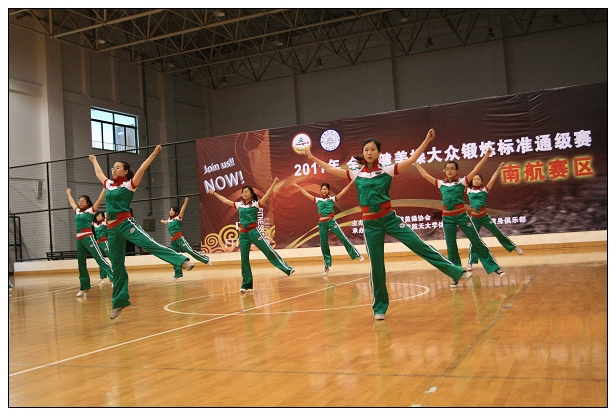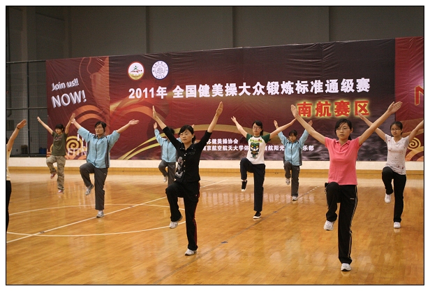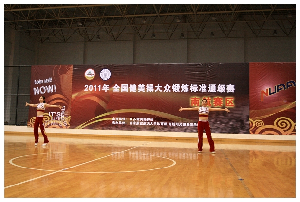 5月22日下午2:00,我校第二届全国健美操大众锻炼标准通级赛在将军路校区体育中心举行,比赛由江苏省健美操协会主办,体育部和南航阳光健身俱乐部承办。江苏省体育局健美操协会秘书长道明蓉女士出席了通级赛,体育部副主任顾若兵宣布比赛开始。