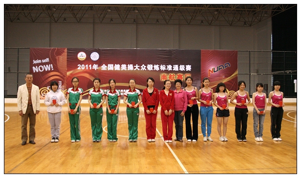 健美操是一项融音乐、健身、娱乐为一体,充满激情、活力,参与性、普及性强,深受广大学生喜爱的体育项目。本次通级赛是对我校健美操教学的一次大检阅,真实地反映了健美操运动的教学水平、普及水平和达标水平。来自我校10级和08级健美操选项班的578名学生分别参加了大众三级、大众四级和大众五级的通级比赛。在近三个小时的比赛中,参赛同学动作优美划一,节奏明快富有活力;青春的微笑洋溢在她们脸上,在力与美中尽显我校当代大学生朝气蓬勃的风采。赛后由江苏省体育局健美操协会秘书长道明蓉女士和体育部副主任顾若兵为部分获奖同学颁奖。