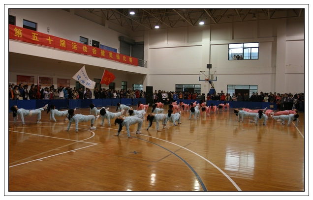 10月29日下午两点,我校第五十届运动会健美操比赛暨啦啦操队员选拔赛在将军路校区体育中心举行,来自十四个学院近600名运动员参加了本届比赛。