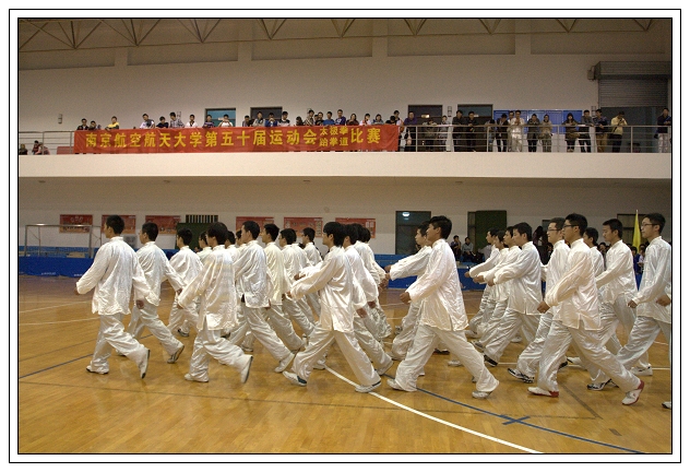 下午一点,太极拳比赛拉开帷幕。各参赛队的队员身着白色太极服,伴随着悠扬的音乐声,野马分鬃,搂膝拗步,一招一势,刚柔相济,充分展现出太极的神韵。经过紧张激烈的角逐,民航�飞行学院和人文与社会科学学院获得太极拳比赛的特等奖,能源与动力学院、外国语学院、经济与管理学院和航空宇航学院获得一等奖。