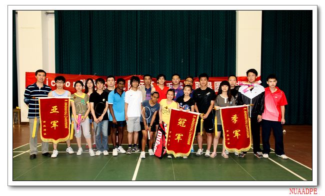 比赛为混合团体赛。初赛采用小组循环,八强赛采取淘汰制。经过两天激烈的角逐,最终国际教育学院赢得冠军,航空宇航学院取得亚军,经济管理学院和计算机科学与技术学院并列季军。体育部副主任顾若兵、群体教研室主任蒋诗泉为获奖学院颁发了锦旗和奖品。