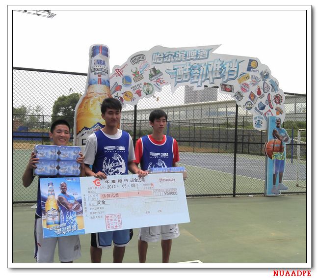 经过各个项目紧张激烈的角逐,航天学院的穆建业同学获得三分球大赛冠军,艺术学院的鹿猛猛同学获得亚军,获得第三名的是民航/飞行学院的赵云同学;经济与管理学院王汉超同学获得花式上篮冠军,航天学院的穆建业同学获得亚军,经济与管理学院陈冠桥同学获得第三名;由经济与管理学院和艺术学院联合组成的兰二队获得三人篮球对抗赛冠军,民航/飞行学院的超哥必过队获得亚军,获得第三名的是经济与管理学院的一支代表队。