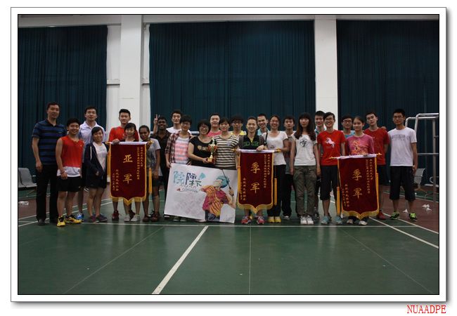 5月12日晚,由南京航空航天大学体育部主办,校羽毛球协会承办的南京航空航天大学第八届院际杯羽毛球赛在将军路校区羽毛球馆落下帷幕。全校十五个学院的代表队参加了比赛。