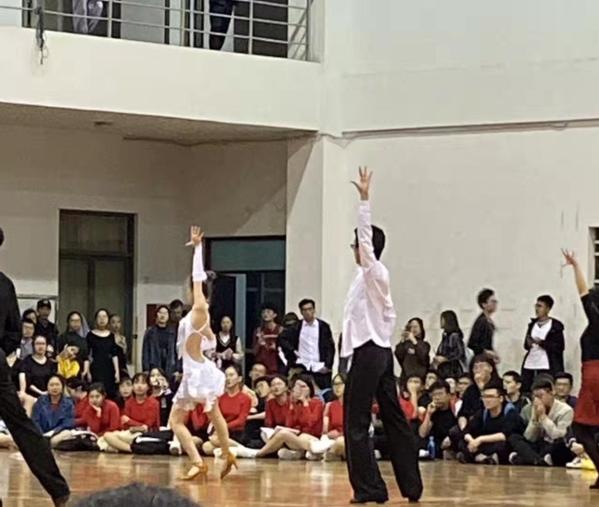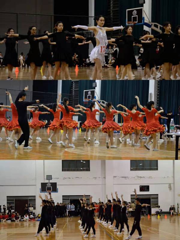 激昂的音乐、幽默诙谐的主持,热烈的校队恰恰开场舞表演,瞬间点燃了现场气氛,拉开了本次比赛的序幕。浪漫婀娜伦巴、欢快俏皮恰恰、热烈火爆桑巴等依次登场,还有最考验默契的双人舞,运动员们的精彩表现引得现场观众欢呼阵阵。最为紧张激烈的是集体舞的精彩对决,集体舞包含伦巴恰恰两个舞种元素,各个学院服装统一,精神饱满、动作整齐、表现力十足,都有自己独特的闪亮之处。在开学不长的时间内各个学院新生就能训练完成颇具难度的拉丁集体舞,真是可喜可赞!