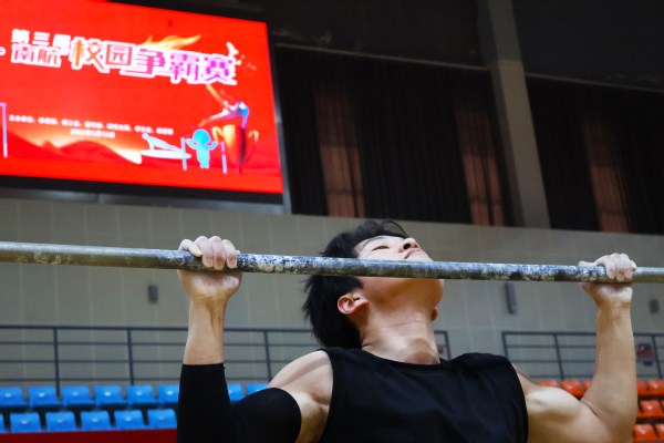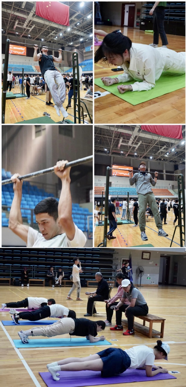 本次比赛分为教工组、学生组两个组别,设置男子引体向上与女子平板支撑两个项目,师生报名异常热烈,吸引近千名学生参加。
