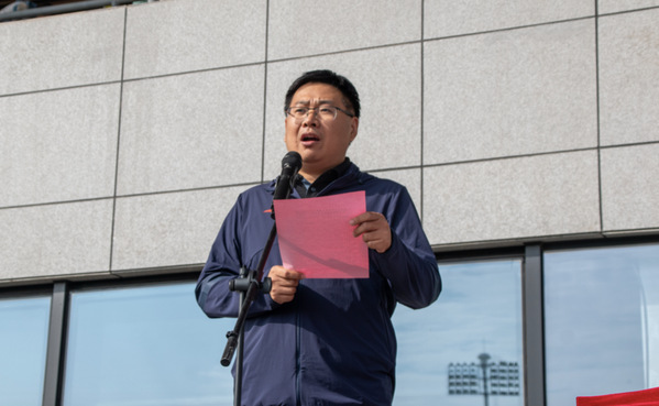 运动员代表通用航空与飞行学院顾丁一同学,裁判员代表体育部许猛老师宣誓后,体育部党总支书记袁贵平宣布:南京航空航天大学第六十二届运动会天目湖校区田径比赛开幕!