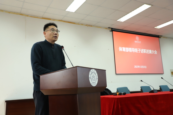 陆森召主任代表体育部领导班子作2023年度工作总结。就落实全面从严治党、全面提升教学质量、开展体育科研师资队伍建设、群体活动开展、竞赛成绩优异、加强宣传阵地建设、加强信息化建设七个方面工作取得的成效进行汇报。他强调,体育部领导班子将坚持党建引领,提高政治站位,提升内部治理能力,建设学习型、廉洁型、实干型领导班子。自觉在大局下想问题、做工作,营造积极向上的体育文化,增强“以体育人”的实效性,为学校“双一流”建设贡献积极力量。