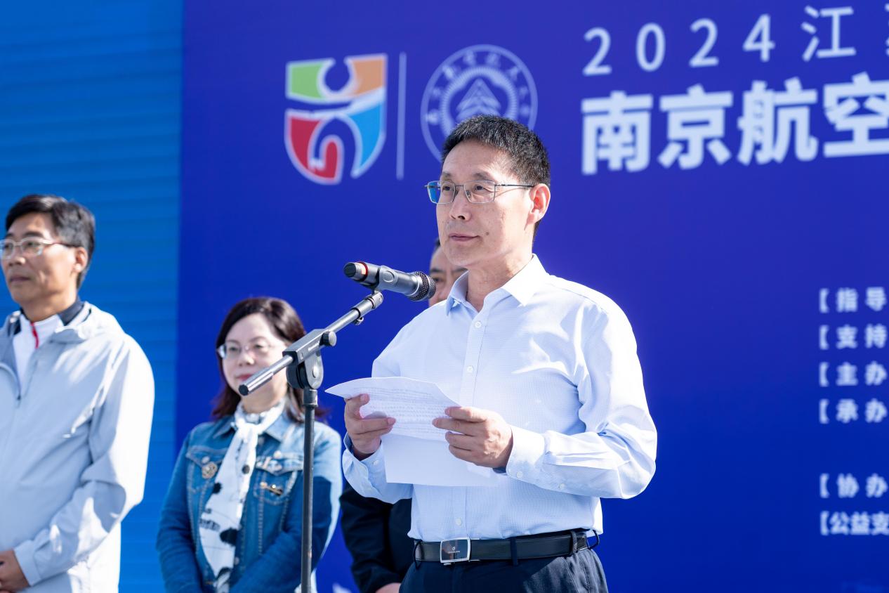 甄良致开幕词,他表示,近年来学校坚持健康第一的教育理念,高质量满足师生对健康生活的需要,“人人乐享运动、师生健康生活”在南航校园蔚然成风。他指出,没有身体健康,难成国之栋梁。希望大家乐享运动、健康生活,在体育锻炼中健全人格、锤炼意志,更好弘扬“团结、俭朴、唯实、创新”的校风,践行“智周万物、道济天下”的校训,在砥砺前行和奋力奔跑中为强国建设、民族复兴作出新的更大贡献。