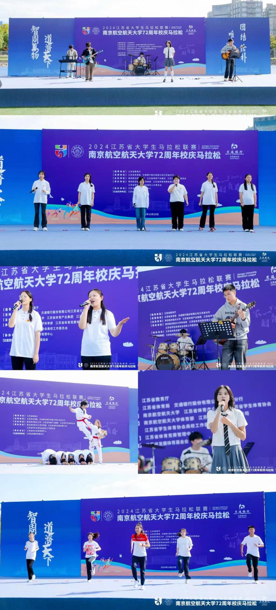 随后,NoBass乐队演奏开幕歌曲《倔强》,跆拳道协会的同学们表演太极章节、跆舞特技,南航的十佳歌手们为大家带来《我们都是追梦人》,精彩开场表演后,体育部教师张亚菲带领参赛运动员做了赛前热身活动。