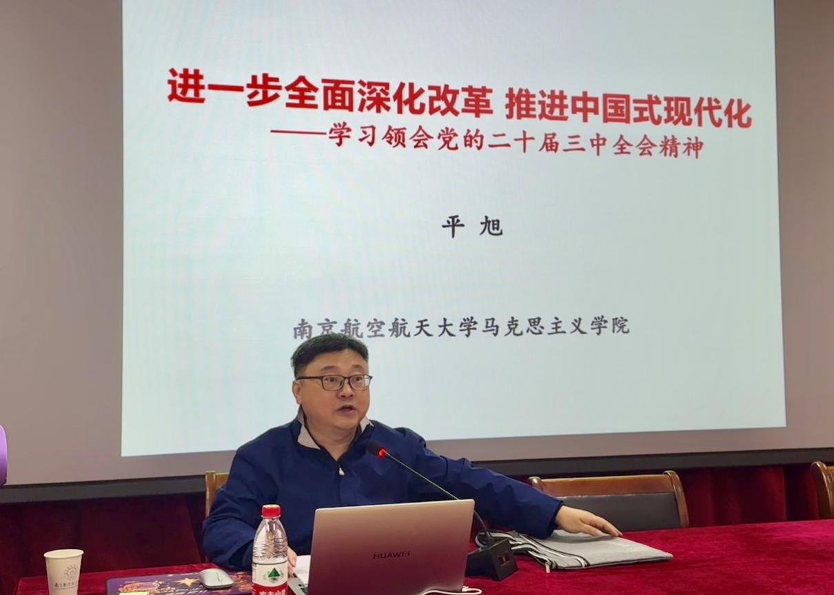 平旭围绕习近平总书记在党的二十届三中全会上的重要讲话和全会《决定》,从深刻领悟党的二十届三中全会的重大意义、全面准确理解《决定》提出的进一步全面深化改革重大举措、全力以赴抓好全会精神贯彻落实等方面,对全会精神进行了系统宣讲。报告深入阐释了全会的“六个坚持”重大原则的丰富内涵、精髓要义、实践要求,深刻回答了进一步全面深化改革、推进中国式现代化的一系列方向性、根本性重大问题,是全会精神的“纲”,指出我们要从世情、国情和党情的变化来学习全会精神。报告还围绕国家重大战略需求,结合学校具体实际,为进一步全面深化改革、推进中国式现代化提供强大动力和制度保障等几个方面做了系统阐释。