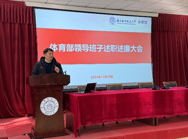 12月20日下午,体育部在将军路校区西区体育中心会议室召开领导班子述职述廉大会。会议由党总支书记袁贵平主持,全体教职工参加会议。