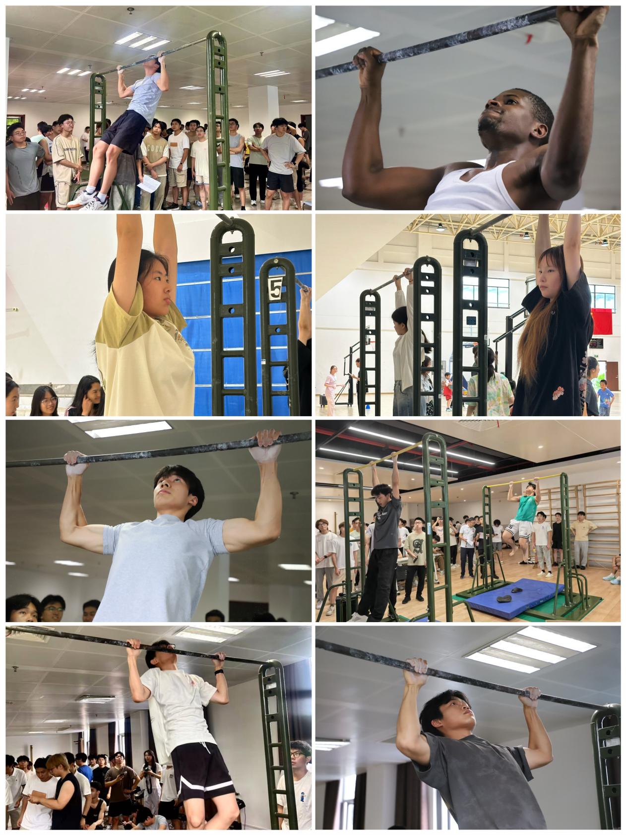 本次赛事延续了引体向上(男子)和单杠悬垂(女子)的核心项目,但最大的亮点在于创新性地以宿舍为单位组队竞技。这一赛制极大地激发了同学们的参与热情和集体荣誉感。来自全校各学院的数个宿舍团队踊跃报名,他们或是朝夕相处的室友,或是临时招募的“外援”,此刻都为了共同的荣誉并肩作战。