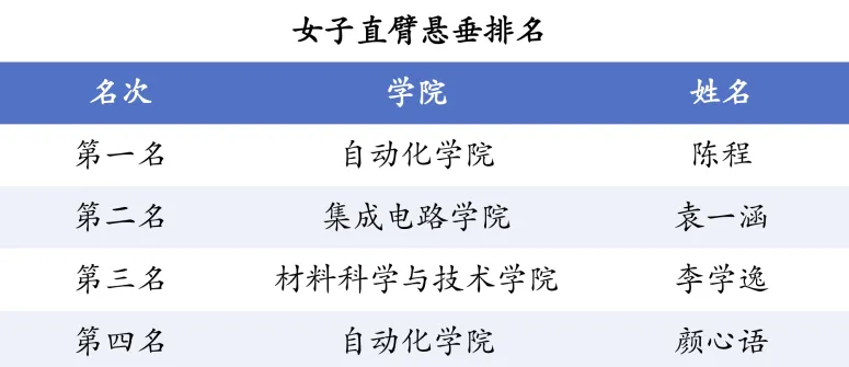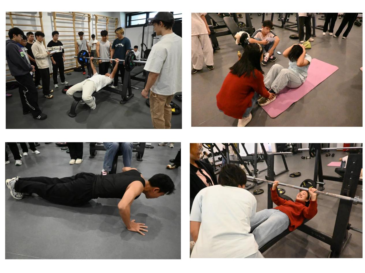 赛事依性别设竞技项目:男子组比卧推、引体向上、俯卧撑,女子组比直臂悬垂、仰卧起坐、平板支撑,另设体验组趣味项目,满足不同基础新生参与需求。