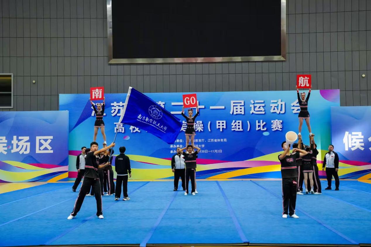 我校健美操啦啦操队在国庆后选拔产生,由20名天目湖校区来自各个学院的大一大二学生组成。在领队寇磊老师,教练周蕴晗老师的带领和训练下,队员们锐意进取,不懈拼搏,在十几支队伍的激烈角逐下,我校参赛项目均进入决赛。最终获得技巧啦啦操第六名,花球啦啦操第七名,男单第五名,女单第七名的好成绩,团体总分位列第八。