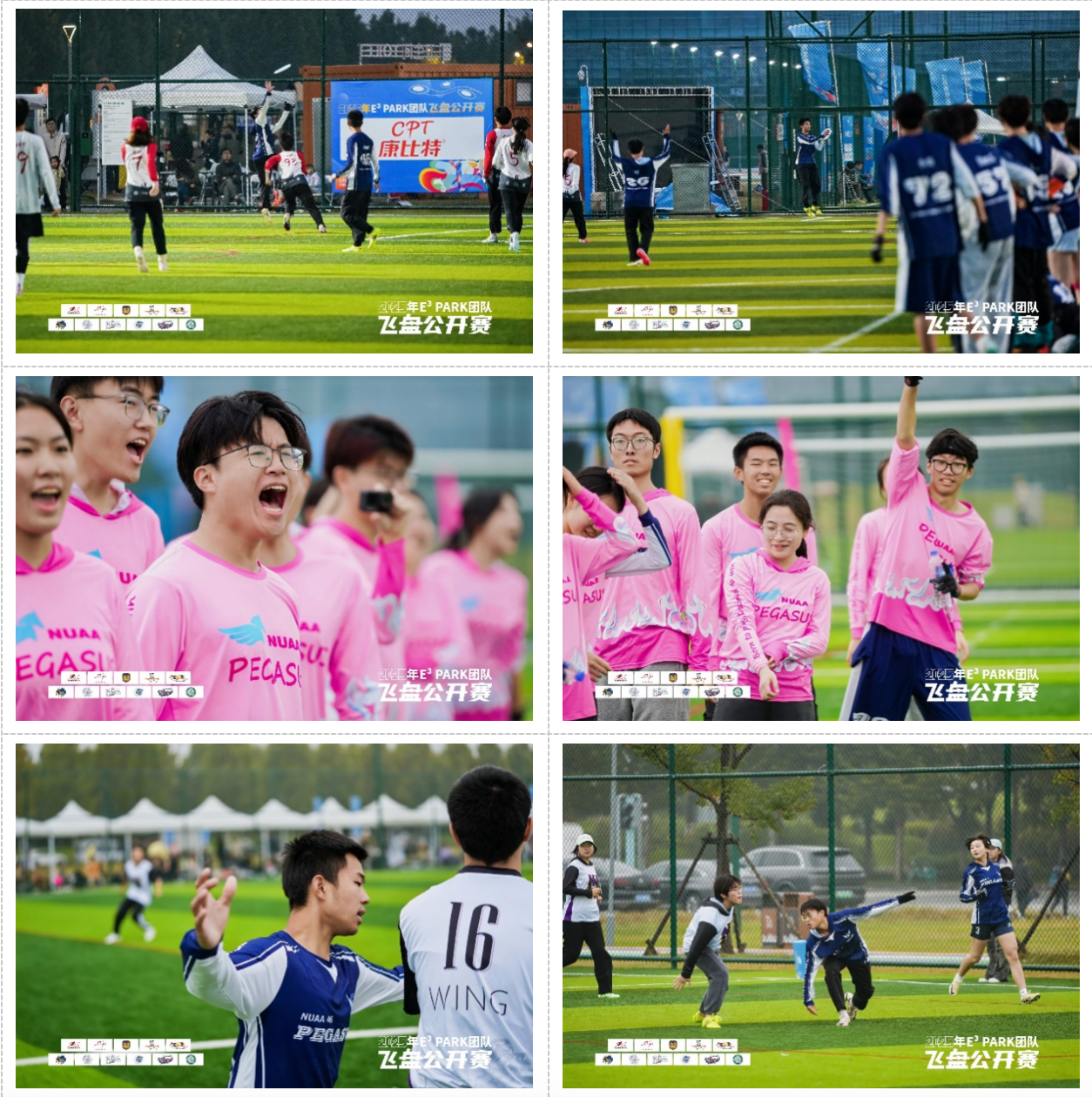11月8日至11月9日,由江苏省社会体育管理中心主办的E³ PARK团队飞盘公开赛在南京市江心洲E³ PARK体育公园举行。作为江苏省规格最高的大学生飞盘赛事之一,本次比赛吸引了南京大学、南京航空航天大学、江南大学、南京邮电大学、南京体育学院等十余所省内高校的近300名运动员参赛。