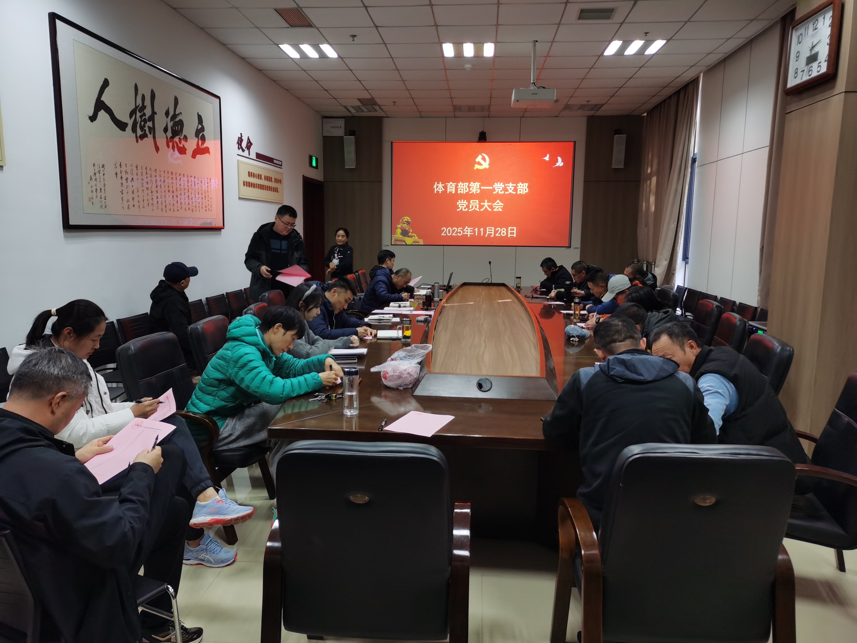 11月28日,体育部第一党支部在将军路校区体育馆109会议室召开党员大会,会议由党支部书记陈建杰主持。
