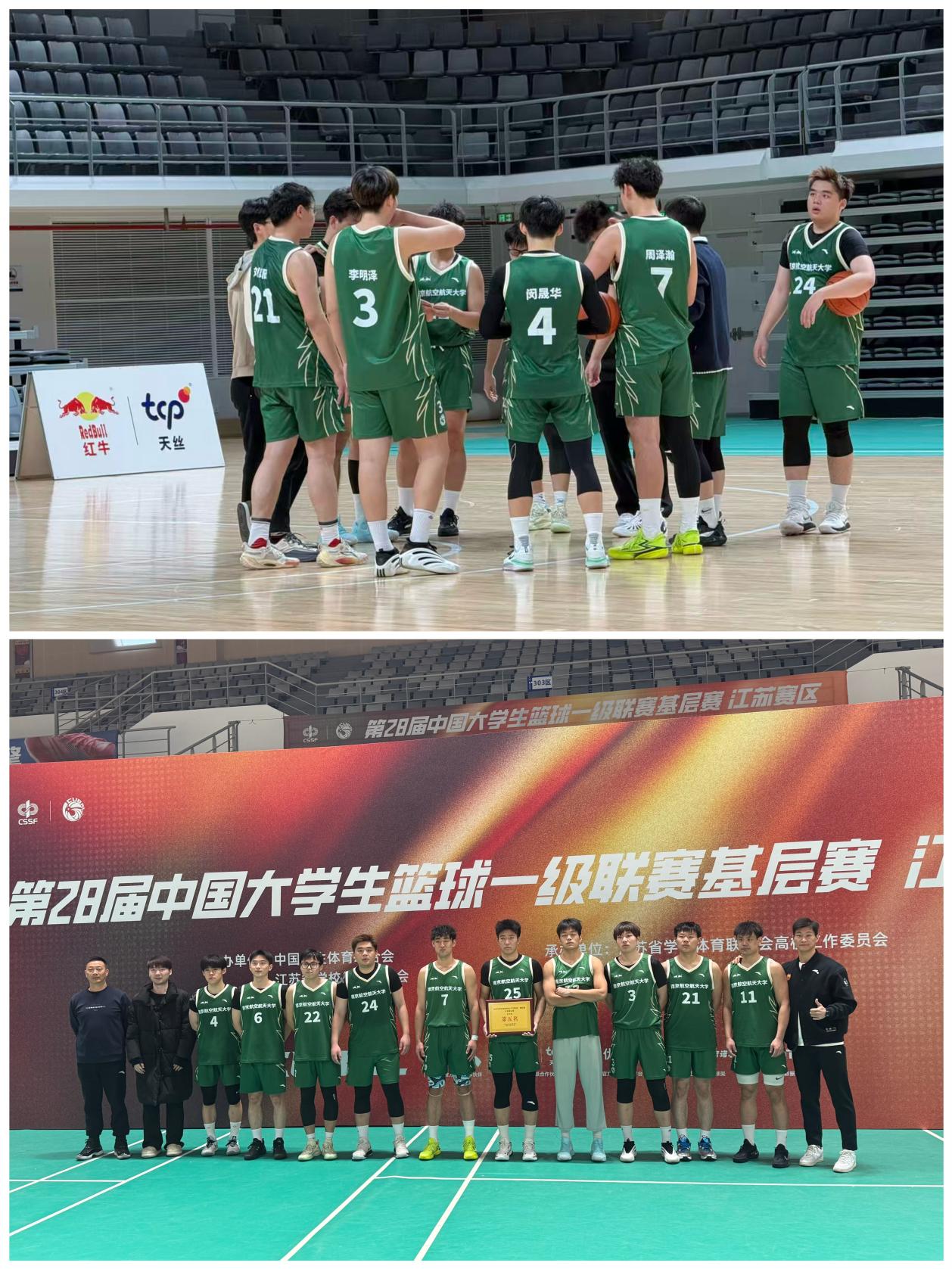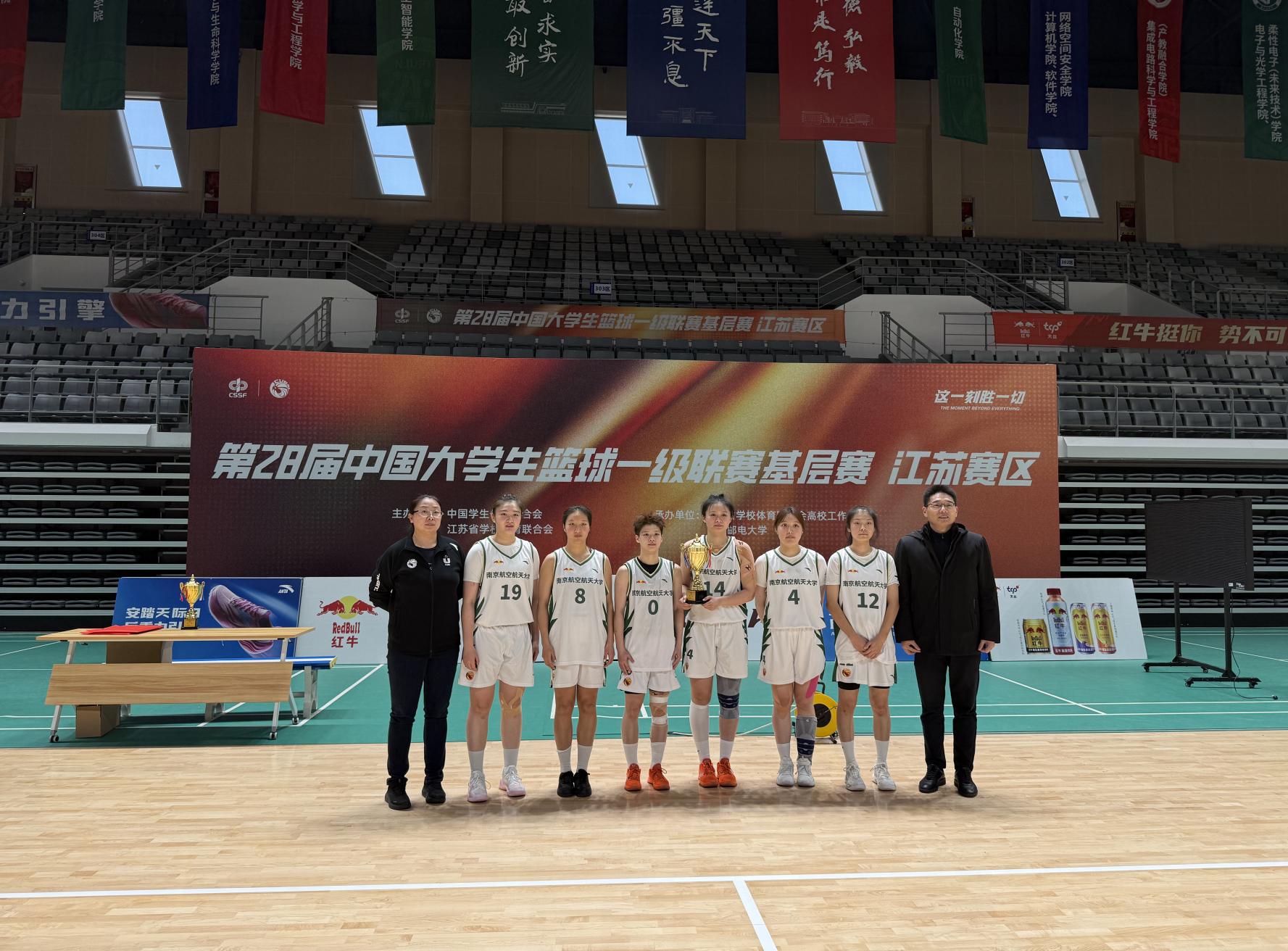 12月31日,2025年江苏省大学生校园篮球联赛(高水平组)暨第28届中国大学生篮球一级联赛在南京邮电大学仙林校区体育馆圆满收官。本次赛事由江苏省体育协会主办、江苏省学生体育协会高校工作委员会承办,为期8天的竞技角逐中,我校男女篮代表队在教练教练蔺铎、姜德鹏两位老师的悉心指导下奋勇拼搏,最终斩获女篮亚军、男篮第五名的优异成绩,彰显南航体育竞技实力与学子青春风采。