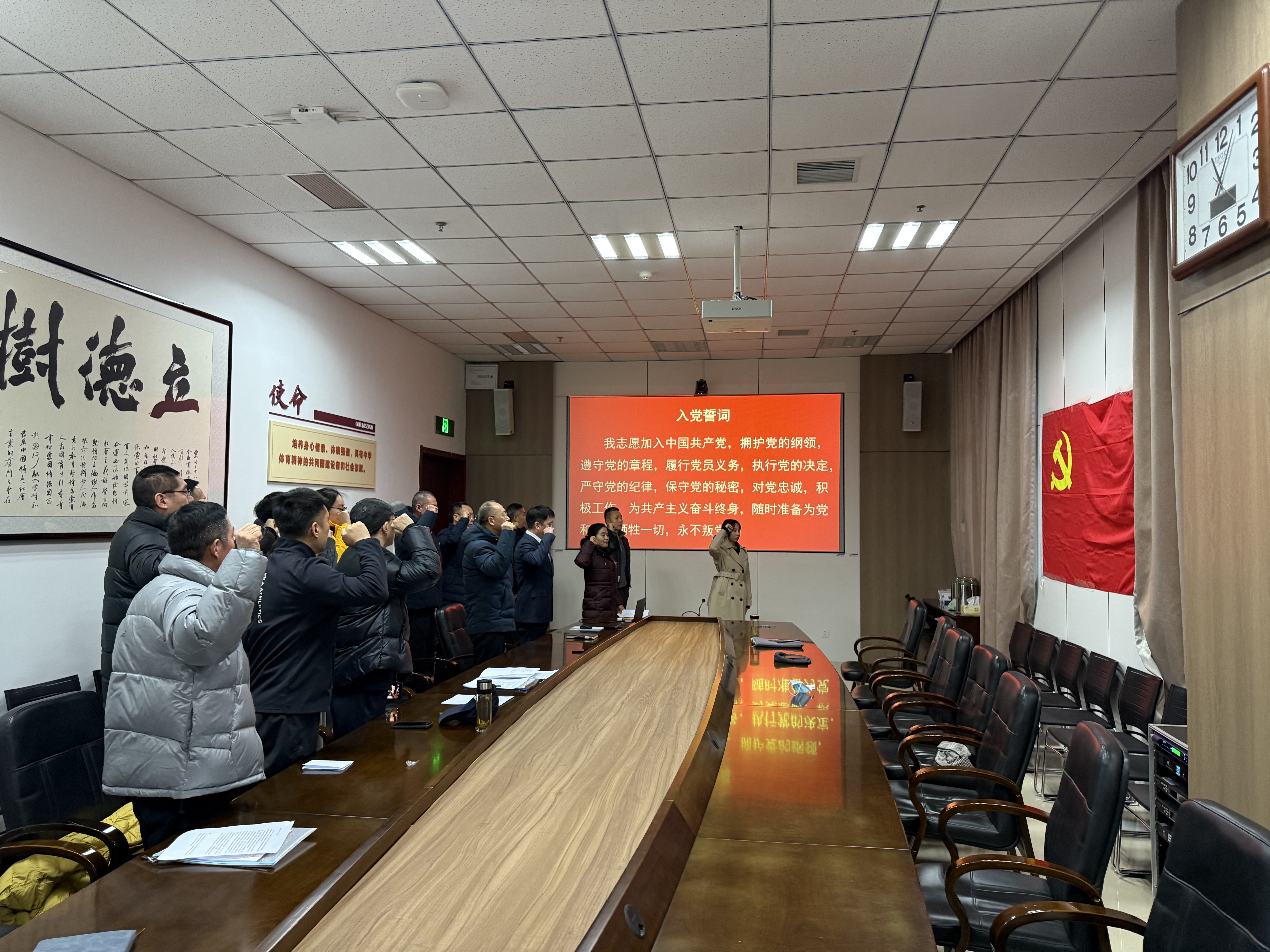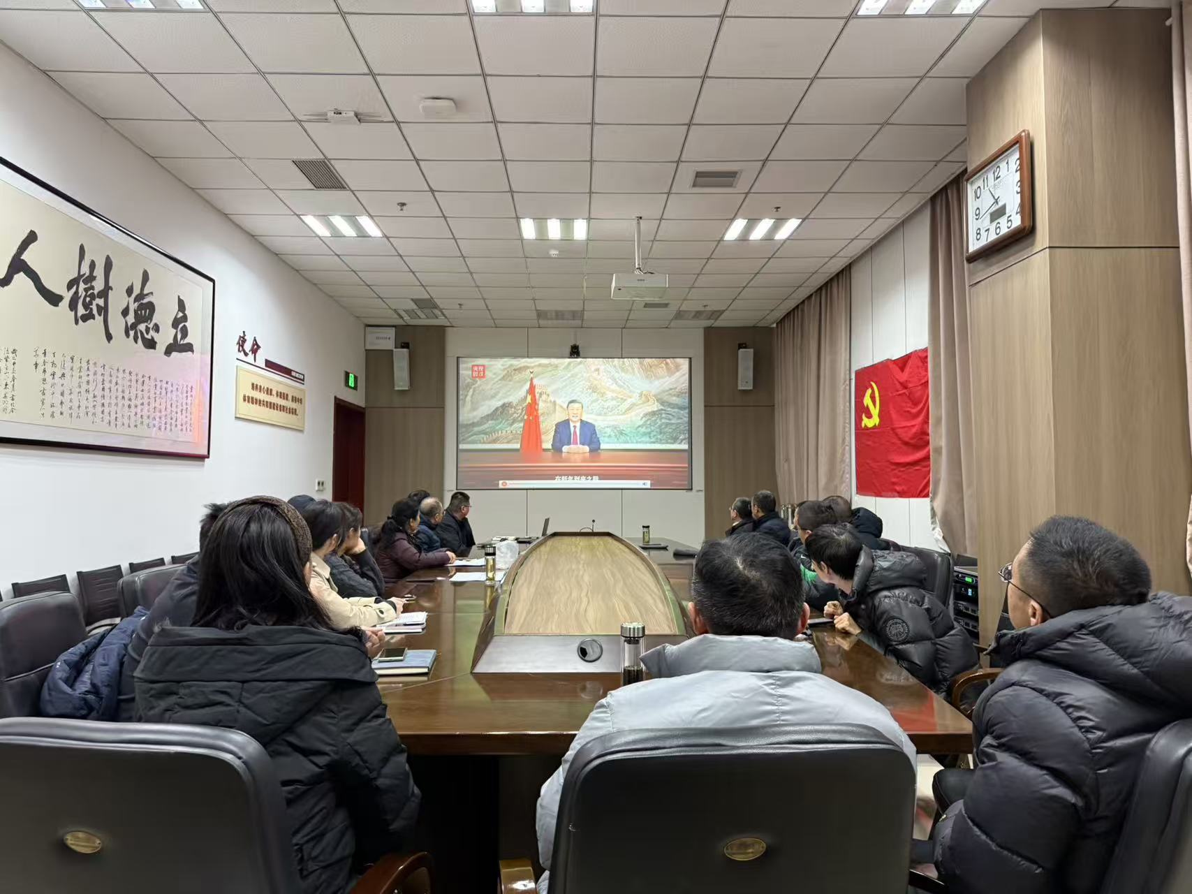 会议第一项议程是理论学习,与会全体党员一起观看学习习近平主席2026年新年贺词。