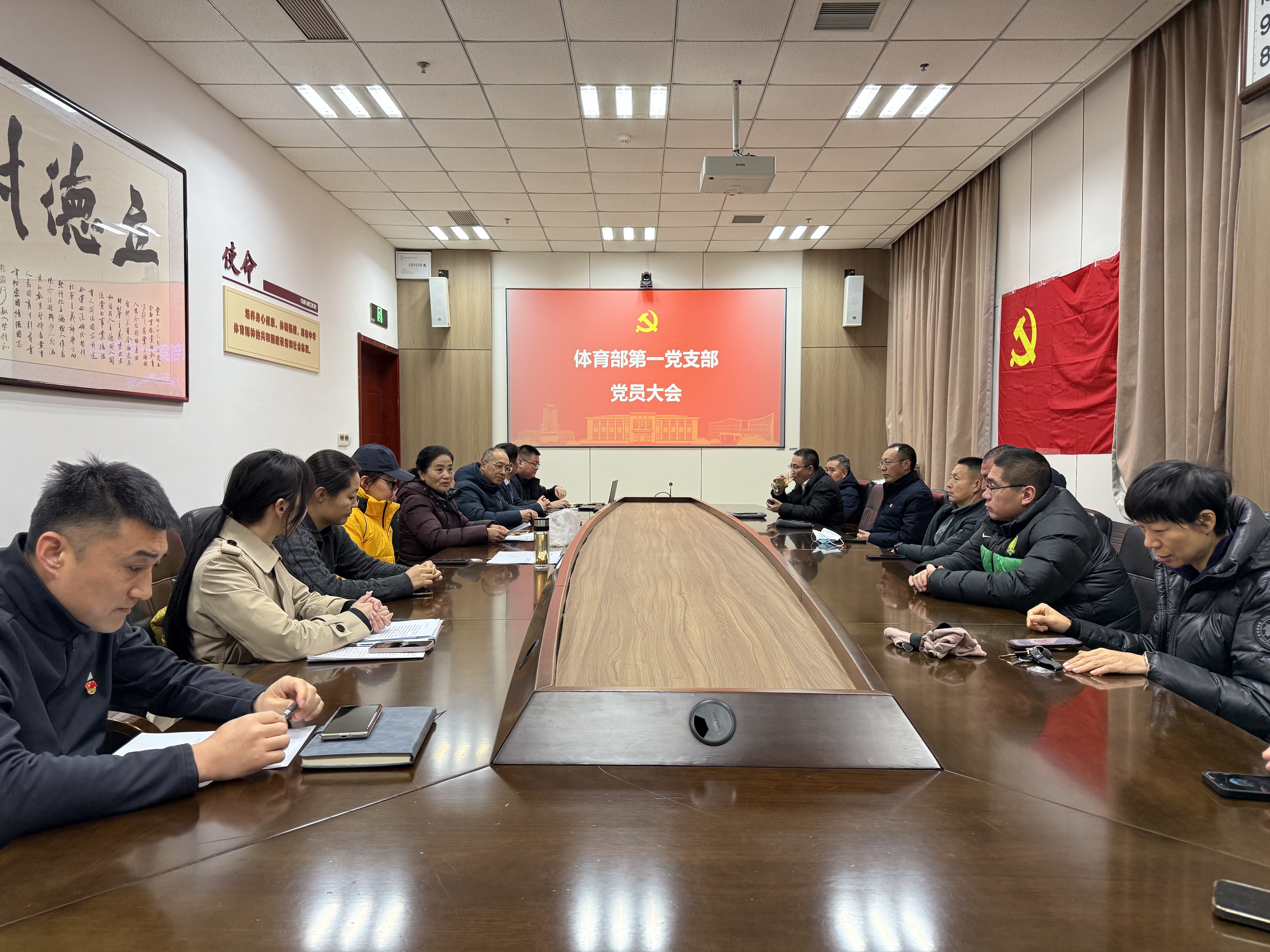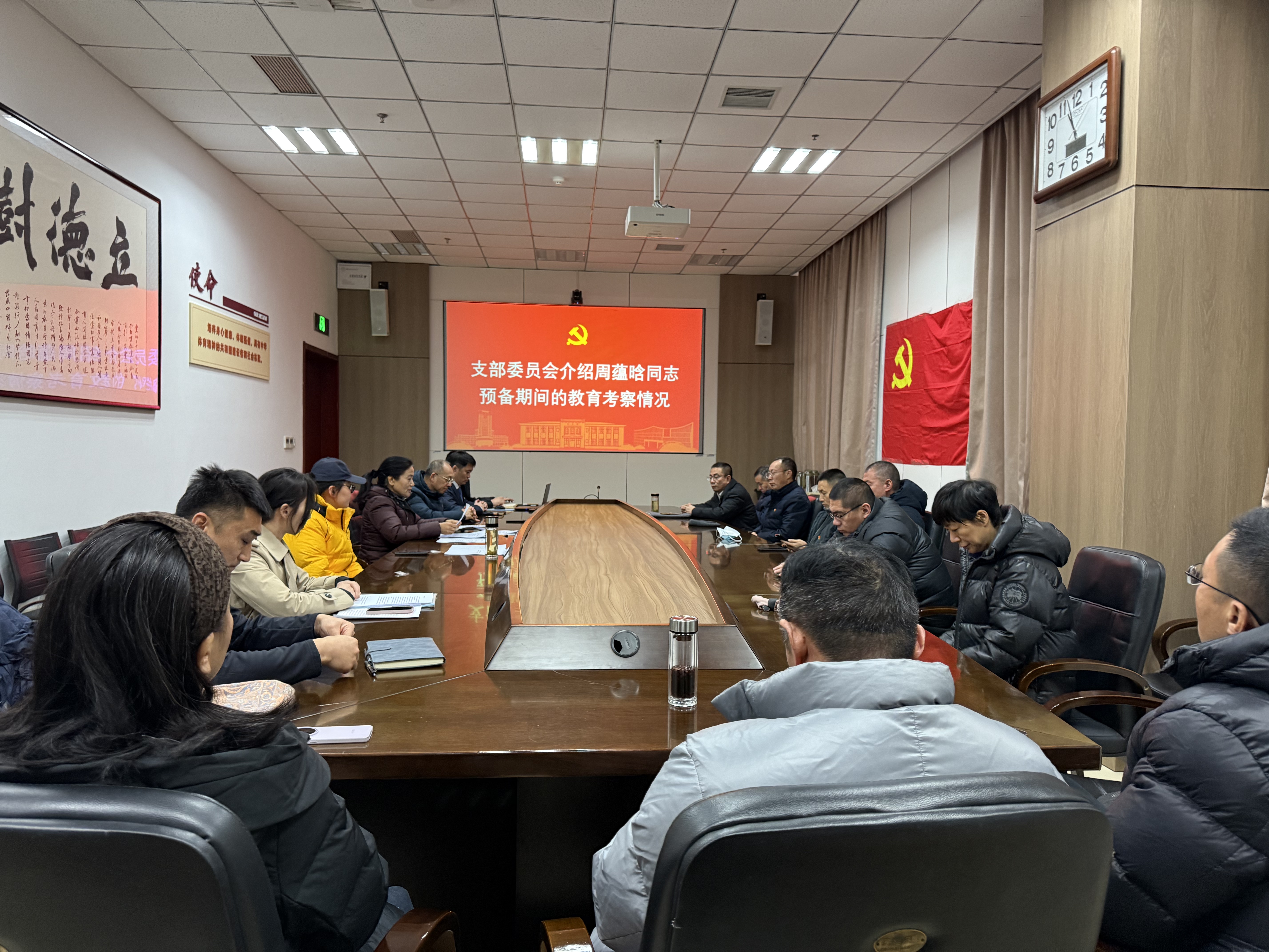 1月25日上午10点30,体育部第一党支部在体育馆109会议室召开预备党员转正大会,会议由支部书记陈建杰同志主持,支部党员全体党员参加会议。会议严格按照预备党员转正流程进行,讨论、审议周蕴晗同志的转正问题。