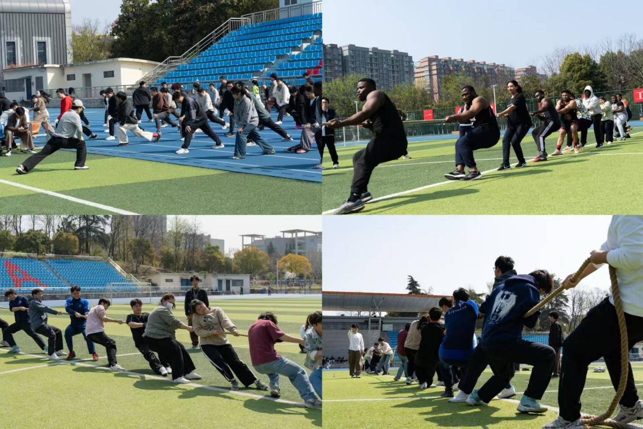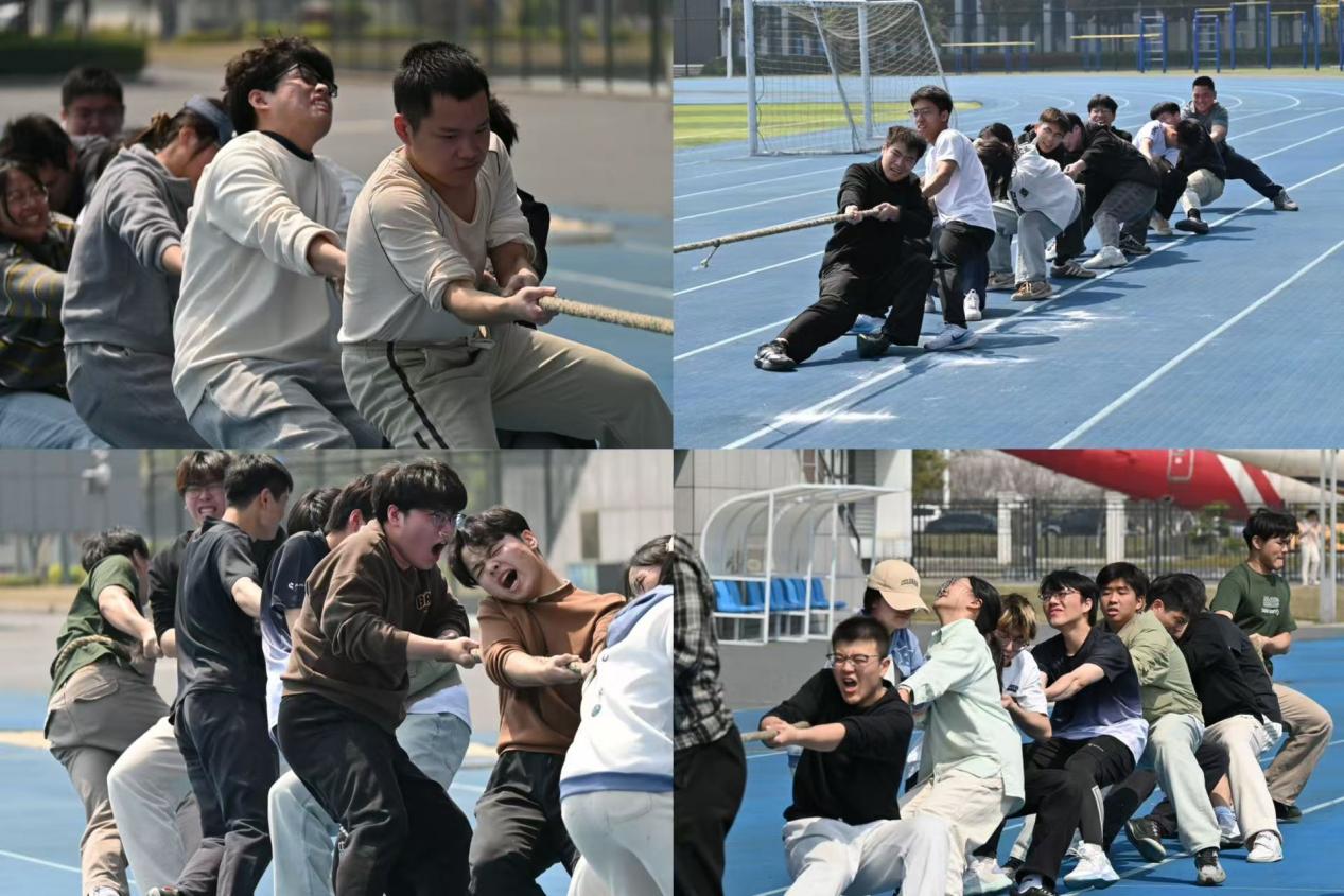 赛哨一响,全员聚力。各队伍紧握绳索、重心后压、协同发力,绳间标记在拉锯中来回移动。整齐呐喊与助威声交织全场,展现出南航学子团结拼搏、昂扬向上的精神风貌。