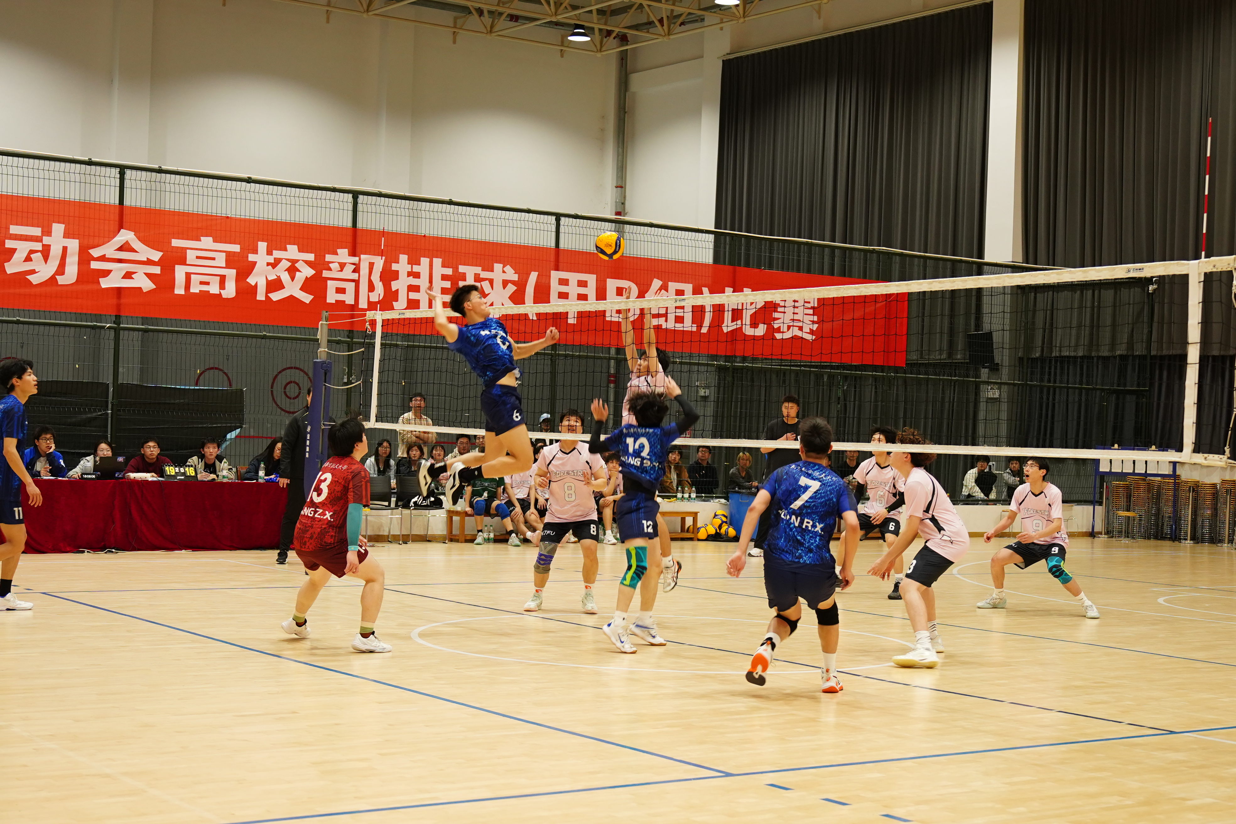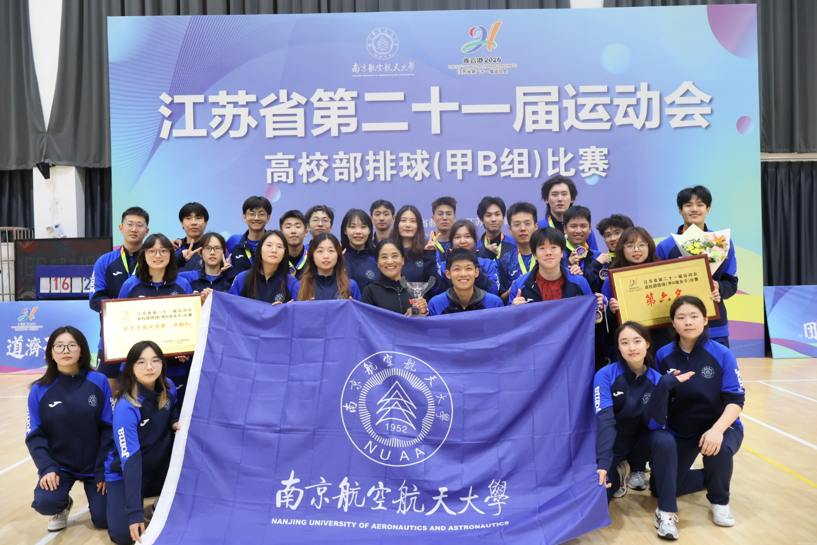 近日,江苏省第二十一届运动会高校部排球(甲B组)决赛在我校将军路校区圆满收官。本次赛事由江苏省教育厅、江苏省体育局主办,南京航空航天大学承办。南京大学、东南大学、南京航空航天大学、南京农业大学、中国矿业大学等在预赛中跻身前八的 8 支男队、8 支女队齐聚赛场、再度交锋,以精湛球技与昂扬斗志,共同呈现了一场洋溢着青春活力与拼搏激情的排球盛宴。我校男女排球队在领队徐昶楠、教练陈建杰和孙浩恩的带领下双线告捷。男排斩获亚军,女排获得第六名,尽显竞技风采。
